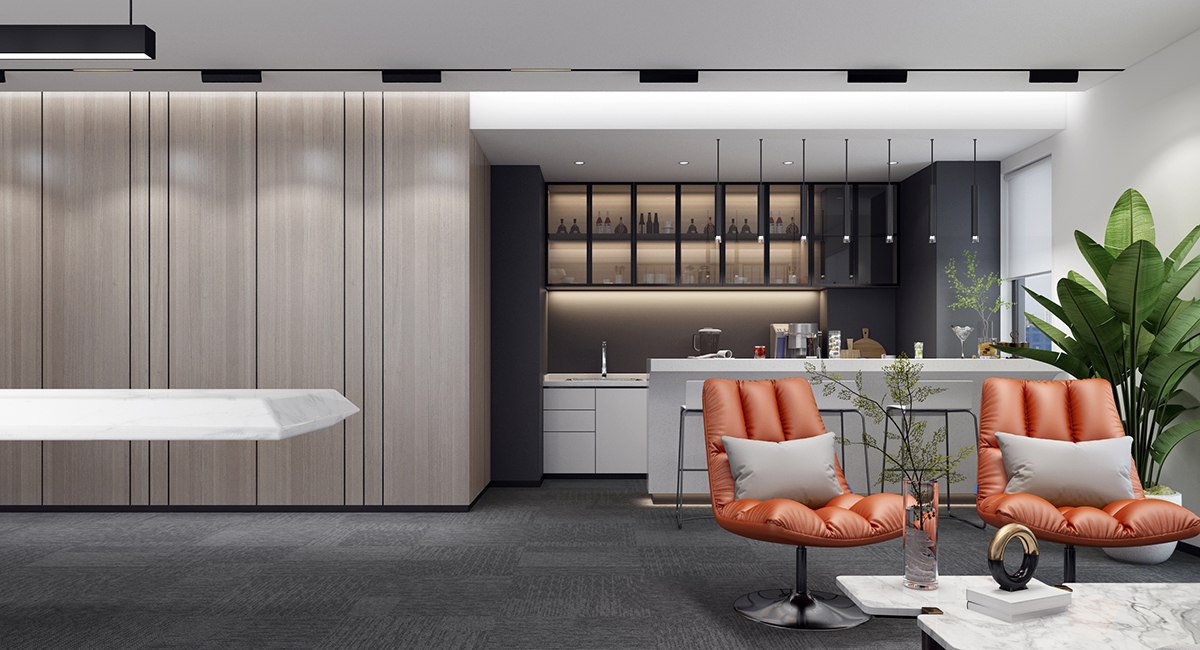 中帮筑基建设集团在沧州办公室装修设计项目中主张,办公环境在氛围上更偏向于家,而不是挤压感!
